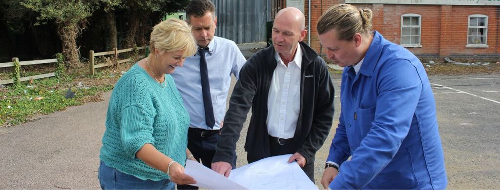 David Weir, Director at On Architecture (right) discusses preliminary plans for the Tannery Lane site with Ashford Borough Council Chief Executive Tracey Kerly, Cllr Bill Barrett